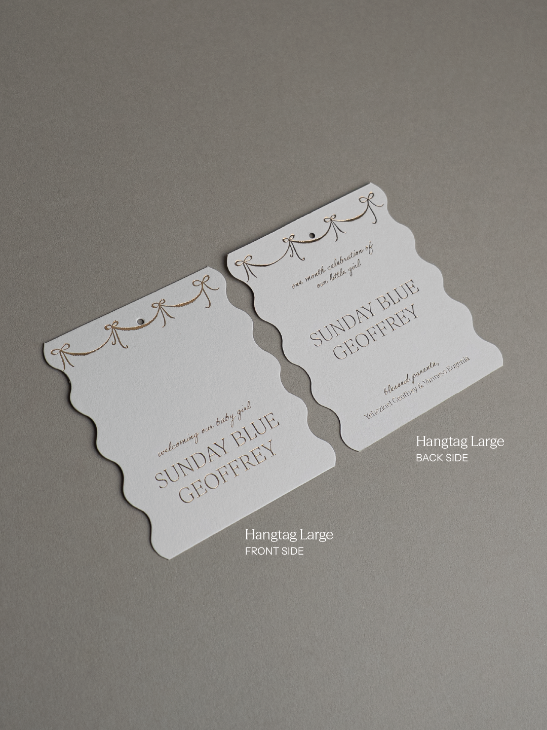 A clean, large-format tag crafted for thoughtful branding, refined packaging, and curated gifting. Personalize with your chosen wording and foil finish to suit your aesthetic. A versatile piece for product labels, thank-you tags, wedding favors, and elevated souvenir presentation.